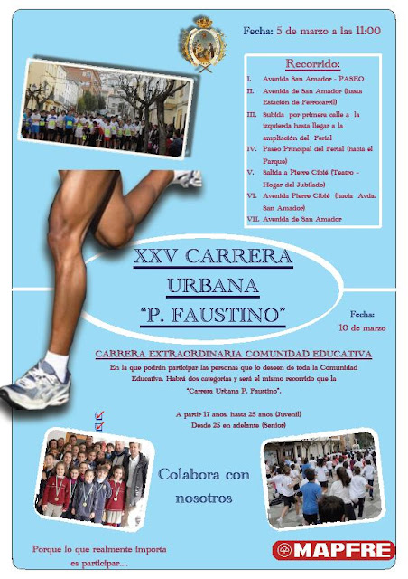 Desde el Colegio Divina Pastora de Martos nos informan que el próximo día 5 marzo será la XXV Carrera Padre Faustino de los alumnos del colegio y el 10 de marzo a las 11 de la mañana será la carrera de toda aquella persona que desee correrla y parcipar.