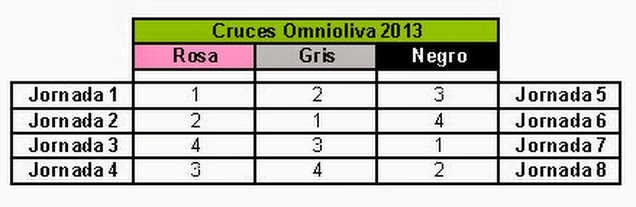 Os mostramos los cruces para la liga, habrá 8 jornadas dónde cada equipo jugará 6 partidos en total y con todos los colores (Rosa, Gris y Negro). Los partidos son de ida y vuelta: